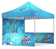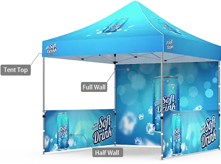 We offer several display packages to meet your different demands. The standard and budget-friendly package of tent top with tent frame is suitable for most of your display needs. If you want to have your logo and marketing message double-exposed, you can also add full walls and half walls to upgrade your package. Single-sided and double-sided printings are both optional for half walls and full walls. Get a half wall and full wall now! >>