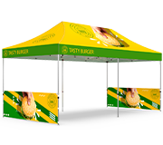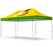 If you have a large exhibiting space, this 10×20 canopy is perfect for you. The dye sublimated tent top can fully express your marketing information. The 600D polyester, featuring flame retardant, water proof and UV protection, ensures you a durable and long-lasting display.