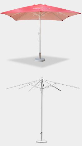 – a double pulley and rope lift mechanism to raise, lower, open, and close the umbrella.