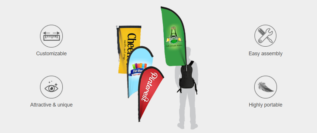 Attractive & unique – Carried by walking people to show your advertising, the backpack flying banner can be very attractive.
