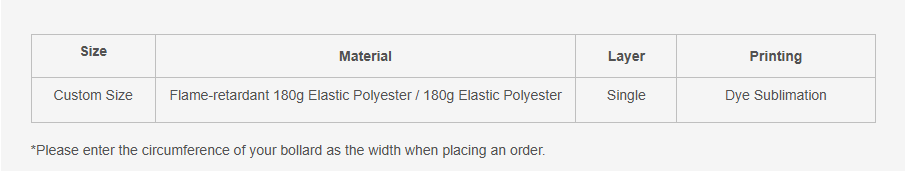 This elastic cloth bollard cover is a great alternative to painting as your logo/design will be dye-sublimated printed on our heavy-duty 180g Elastic Polyester to ensure your appearance and brand recognition with vibrant graphics. It will save you a lot of time, expense, and mess of paint.
