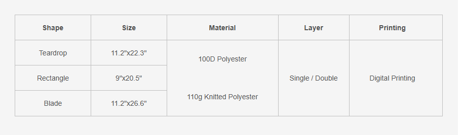 We can print these flags single-sided or double-sided for you. For double-sided flags, we will insert a blackout cloth so that your logo or designs on the two sides will not affect each other.