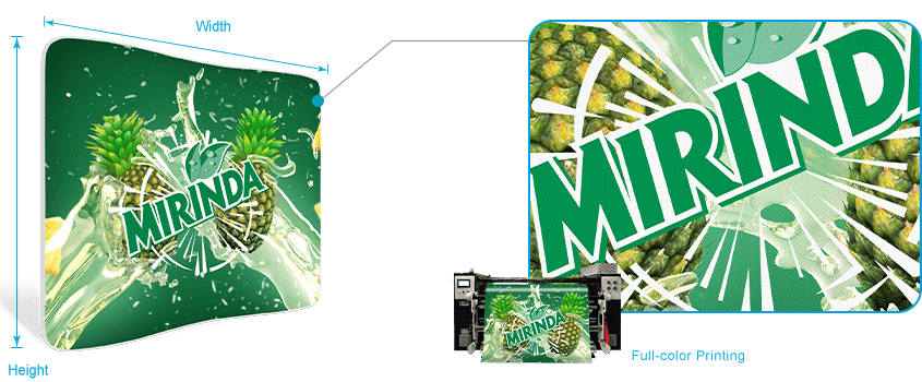 Decorate your background with this visually stunning Curved Tension Fabric Display. Quality graphics printed on stretch fabric with dye sublimation printing, which makes your Curved Tension Fabric Display can be used for a longer time.