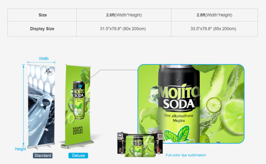 • 📏 Standard & Custom Sizes: Most popular rollup banner size – 33″ x 80″, with other sizes available