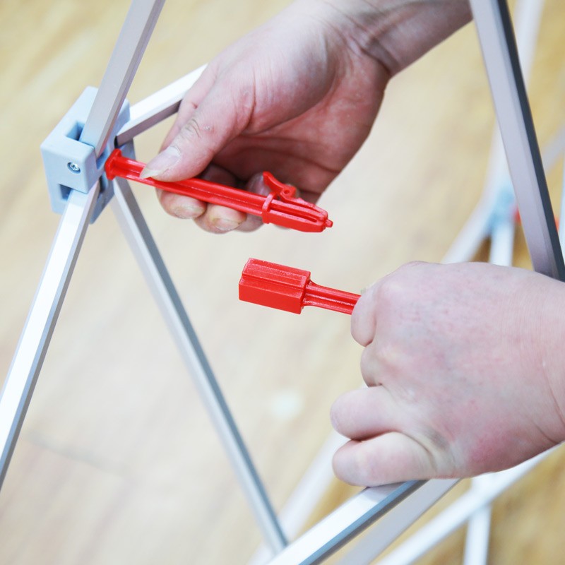 This frame is for our Double Sided Fabric Popup Display (SKU:DSSFPD). It is of whole frame design, you just need to pull apart the collapsible frame, it will be “pop up” in just a few seconds. There are clips on the frame, you can lock them to secure when the frame is expanded. And each frame will come with a carrying bag.