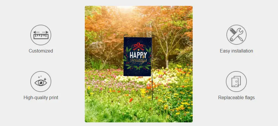 Replaceable flags – You can purchase the flags with or without hardware, so whenever you need to replace graphics for your garden flags, you can get them easily at us.