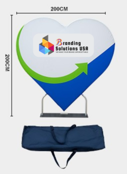 This heart shape can be free-standing not only in expos and trade shows but during memorable times such as weddings, anniversaries, parties, bridal showers, and more with With firm curved legs and a sturdy steel base. It consists of a lightweight aluminum tubing frame, full-color printed vibrant graphics, and a carrying bag, so you can carry it from one event to the next easily.