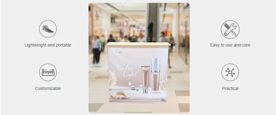 Lightweight and portable – It is a very portable, lightweight, collapsible display counter due to the smart frame design.