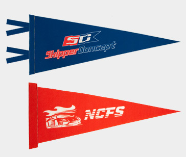 Choose felt pennants custom printed with your brand, school, or team name—or explore our blank felt pennants for DIY projects and crafts.