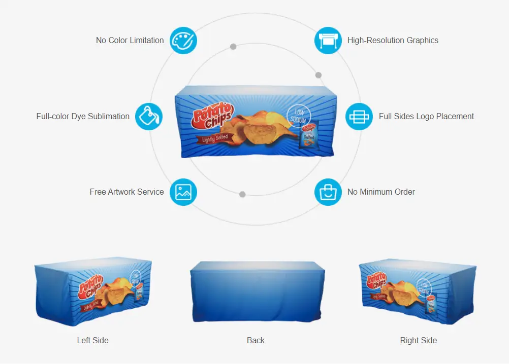 want to choose a budget-friendly fitted table cover, then165g 300D polyester would be a good choice. While if you are preparing for an advertising display at night, the fluorescent polyester tablecloth will help you stand out.
