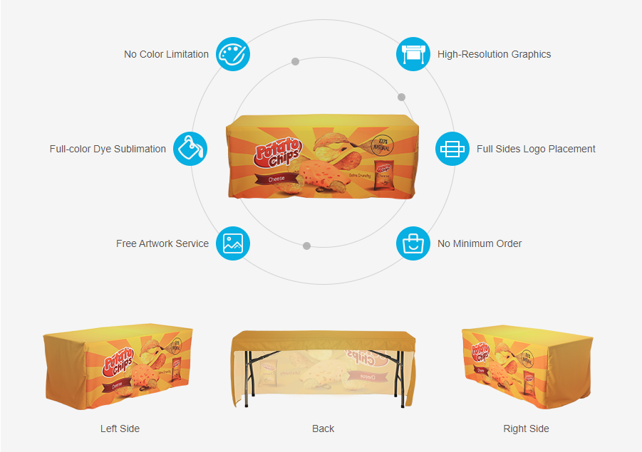 Yes, the fitted table cover sizes are 4′, 6′, and 8′ in our store, but the size of the fitted table cover can also be customized according to your table sizes or template sizes. If you need customized sizes, please contact our representatives for customer service.