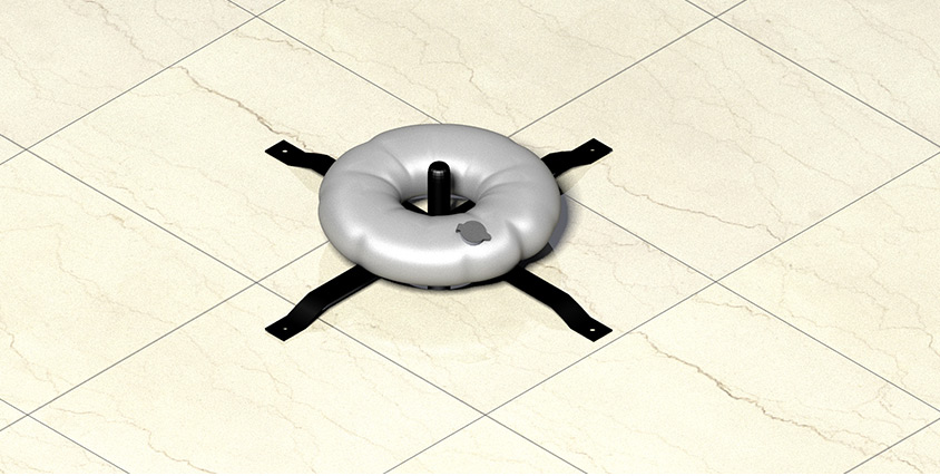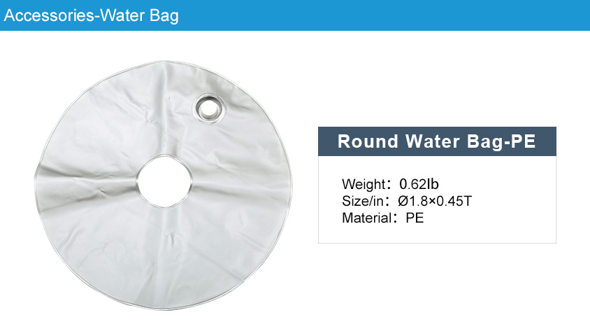 The round water bag is made of PE. The fill port allows filling with water when greater weight is required. The water bag can be used along with our cross base for even greater stability.
