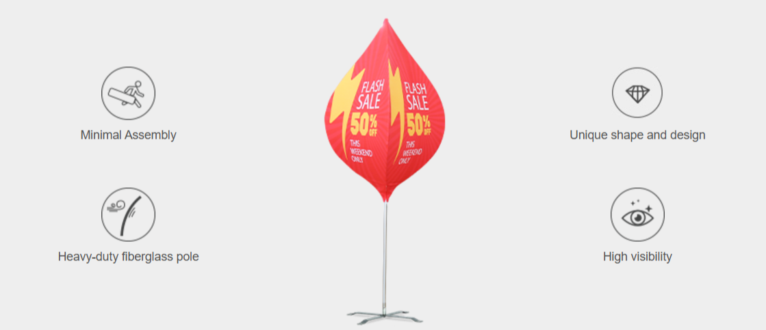 Unique shape and design – This unique spinning dart banner will make your brand stand out in any crowd.