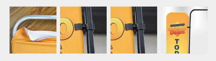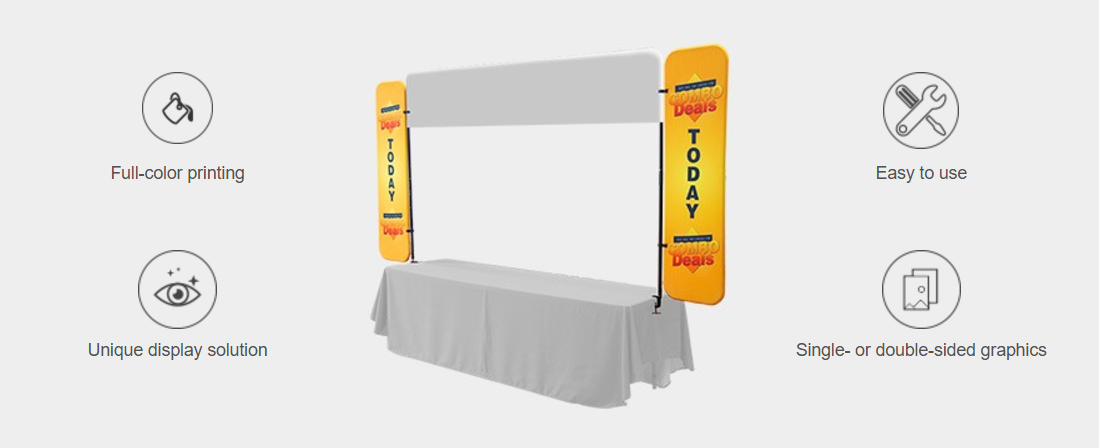 Single- or double-sided graphics – You can print your logo on the banner single-sided or double-sided. A double-sided graphic cover will be viewable from both the front and back of the display.