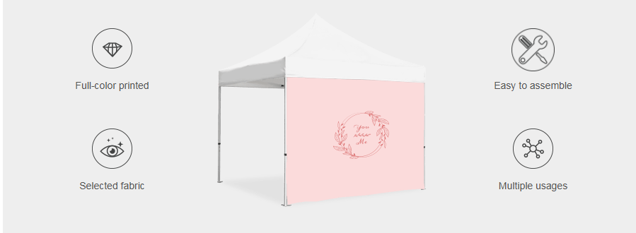 Multi-functional – It is a corner curtain that can add a touch of elegance to your tent, in the meantime, it is also a full wall that can display your logo or your event theme.