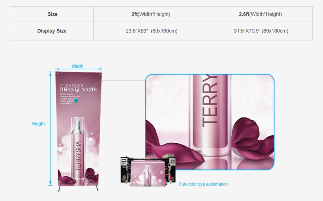 📏 Standard X Banner Size: Available in popular dimensions such as 24″ x 63″, 32″ x 72″, and 1024 x 576 pixels for digital mockups