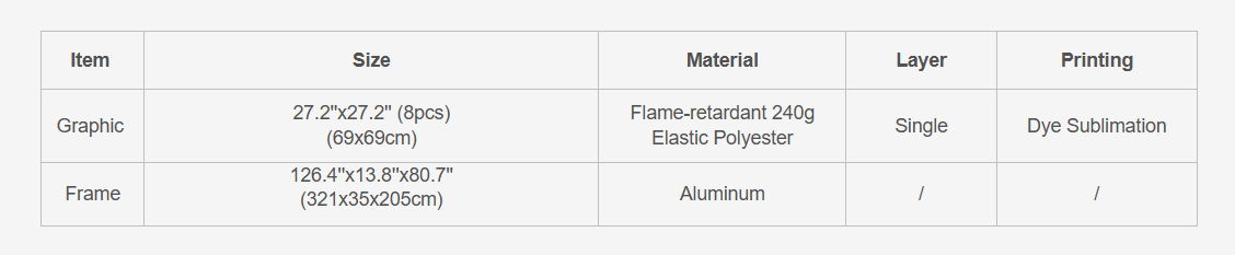 The installation is super easy and fast, just simply pop up the aluminum frame and attach the graphics for no-fuss set-up. And each kit also includes a carrying bag for easy storage and transport.